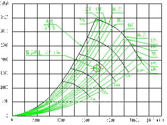 主扇風(fēng)機(jī)變頻改造后,其各轉(zhuǎn)速點(diǎn)的壓力和流量曲線相對工頻時(shí)的曲線是平行往下移動(dòng)的,相應(yīng)的各速度點(diǎn)的風(fēng)機(jī)高效運(yùn)行區(qū)也是跟著各轉(zhuǎn)速點(diǎn)的壓力和流量曲線移動(dòng)的;變頻改造后,在保持風(fēng)道風(fēng)阻曲線不變的情況下,通過調(diào)節(jié)風(fēng)機(jī)轉(zhuǎn)速達(dá)到滿足工藝要求壓力和流量的目的;故變頻運(yùn)行調(diào)節(jié)方式是一種保持風(fēng)道風(fēng)阻曲線不變,改變壓力和流量曲線來滿足實(shí)際工藝需求的方式,由于風(fēng)機(jī)效率曲線是跟著各轉(zhuǎn)速點(diǎn)的壓力和流量曲線移動(dòng)變化的,故變頻改造后能保證風(fēng)機(jī)一直運(yùn)行在高效率區(qū)。