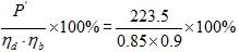 風(fēng)機(jī)實(shí)際軸功率P′= =223.5 kW