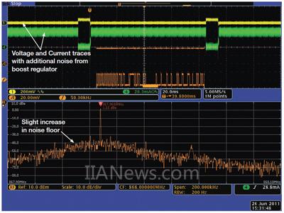 圖6. 使用升壓轉(zhuǎn)換器的電源和電路板噪聲