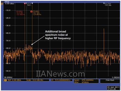 圖7. 在使用升壓轉(zhuǎn)換器時(shí)來(lái)自數(shù)字電路板的寬頻譜噪聲