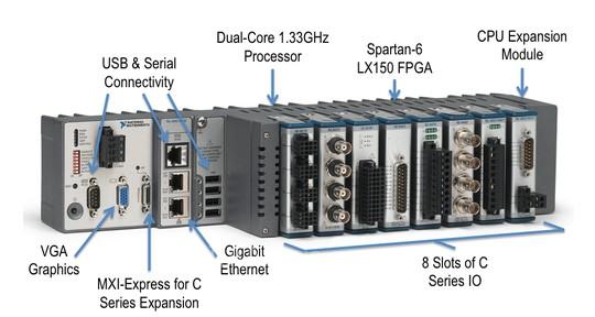 高性能的多核CompactRIO具備集成的8槽 C系列底板,并可通過C系列擴展選項而大幅提高I/O數(shù)量,若搭配高帶寬、低延時的MXI-Express總線,則可進一步使用多款CompactRIO平臺的擴展選項。所有C系列擴展機箱,均搭配了用戶可編程的FPGA,以用于自定義的數(shù)據(jù)處理任務(wù)。