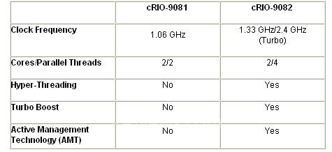 表1. 多核CompactRIO具有高級的Intel雙核處理器