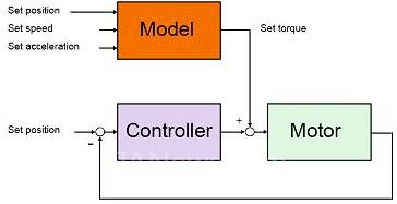 在這個模型中,當(dāng)設(shè)定位置、設(shè)定速度及加速度值給出后,則將根據(jù)當(dāng)前值和機械常數(shù)來計算出整個運動過程的慣量變化,并計算出力矩輸出的前饋值給電機,該值與控制器給定值在電流環(huán)中的控制輸出進行疊加,使得扭矩輸出可以快速的實現(xiàn)穩(wěn)態(tài)調(diào)整,從而降低扭矩輸出的偏差。該前饋輸出需要在偏差產(chǎn)生之前即給出,并且以每50uS的周期不斷地刷新,由于其高速刷新,確保了扭矩輸出值高速與高精度,并能夠同步地跟隨機械慣量的變化,達到較好的控制狀態(tài)。
