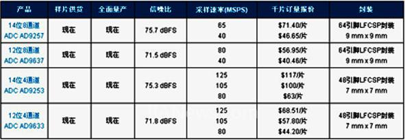 14位8通道ADC AD9257和12位8通道ADC AD9637均在單封裝內(nèi)集成8個ADC,并且每通道功耗比其他8通道的分立轉(zhuǎn)換器低40%。ADI公司最近還推出了14位4通道ADC AD9253和12位4通道ADC AD9633;這些器件均采用48引腳芯片級封裝,尺寸比競爭產(chǎn)品縮小10%以上。