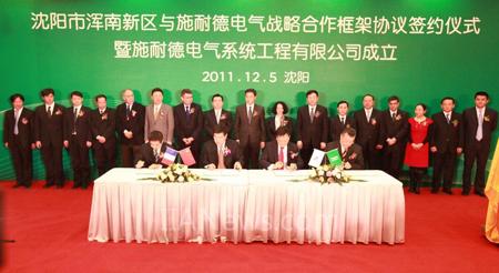 全球能效管理專家施耐德電氣宣布,施耐德電氣與沈陽市渾南新區(qū)戰(zhàn)略合作框架協(xié)議簽署——暨施耐德電氣系統(tǒng)工程有限公司成立儀式在沈陽市舉行。遼寧省省委書記王岷在接見施耐德電氣中國區(qū)總裁朱海時(shí)也對施耐德電氣投身沈陽節(jié)能減排工作給予高度評價(jià)。同時(shí),法國駐華大使白林女士,遼寧省副省長邴志剛,沈陽市市委書記曾維,沈陽市市長陳海波,沈陽市渾南新區(qū)區(qū)長趙世宏也出席會議,沈陽市副市長楊亞洲出席并主持會議。