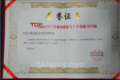 利德華福作為特邀嘉賓企業(yè),參加了《電氣時(shí)代》雜志社主辦“第八屆中國(guó)電氣工業(yè)發(fā)展高峰論壇暨第12屆中國(guó)電氣工業(yè)100強(qiáng)頒獎(jiǎng)盛典”,并被組委會(huì)授予“2011年度中國(guó)電氣工業(yè)創(chuàng)新力10強(qiáng)”。