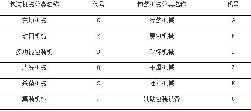 包裝機(jī)械的分類名稱及代號(hào)參見國家標(biāo)準(zhǔn)GB7311-87,如下表: