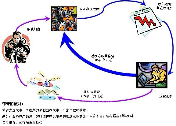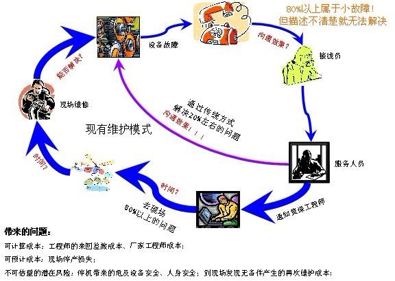 對(duì)于制造業(yè)十二五計(jì)劃中提出了,發(fā)展先進(jìn)的裝備制造業(yè),全面提高信息化水平,推動(dòng)信息化和工業(yè)化的深度融合。而資深工程師的維護(hù)工作占據(jù)主要精力,將極大的制約這一目標(biāo)的實(shí)現(xiàn)。本文為全力推動(dòng)包裝機(jī)械企業(yè)的信息化建設(shè),解決包裝機(jī)械企業(yè)面臨的設(shè)備安裝調(diào)試和后續(xù)維護(hù)等問題,解放資深工程師的生產(chǎn)力,提出了一種設(shè)備遠(yuǎn)程維護(hù)中心。遠(yuǎn)程維護(hù)中心的建設(shè),通過對(duì)包裝設(shè)備控制核心可編程控制器PLC的遠(yuǎn)程控制,可以對(duì)賣出的設(shè)備實(shí)現(xiàn)全球化的遠(yuǎn)程實(shí)時(shí)在線調(diào)試,故障診斷,預(yù)防性維護(hù)等工作。