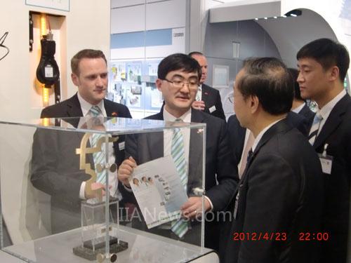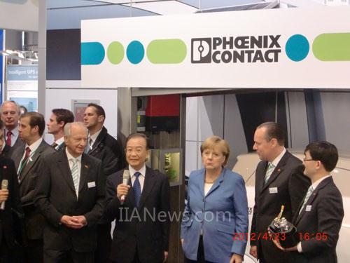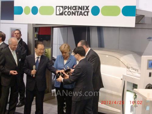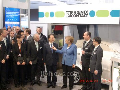 在菲尼克斯的展區(qū),溫家寶總理發(fā)表了熱情洋溢的演講,使在場人員深受鼓舞。其中,“在智能和綠色能源領域,我希望將來中國和德國并列第一”的結束語引發(fā)了現(xiàn)場觀眾的熱烈鼓掌和無限遐思。