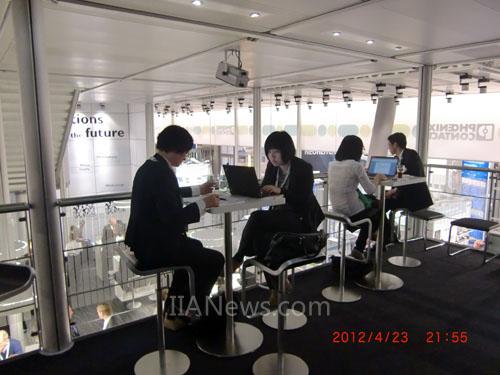 受邀參加漢諾威展會的媒體朋友,正在菲尼克斯電氣二樓的工作區(qū)緊張地工作。