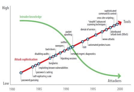 保持計算機補丁更新,同時對操作系統(tǒng)和應(yīng)用軟件的安全更新是防止這類攻擊的最佳方法。剛發(fā)布的安全漏洞很容易被流行易用的免費工具所利用。見圖2 所示,這些工具已經(jīng)非常先進,先進到足以能夠完成復(fù)雜的攻擊,而入侵者不需要很多的知識和技能。發(fā)布漏洞到使用可能性的時間在縮短,結(jié)果是實施攻擊人數(shù)在不斷增加。
