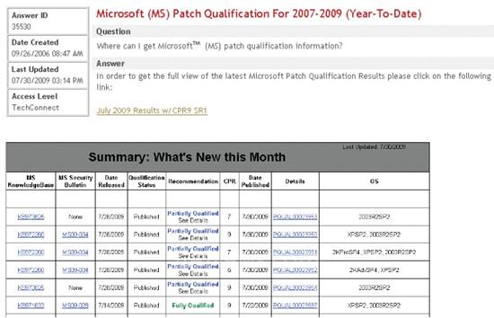 評價程序的最后部分是測試每個更新補丁,確保不會給計算機的操作和應(yīng)用軟件帶來負面影響。羅克韋爾自動化在這方面幫助客戶,證明所有微軟的安全更新對于常用的羅克韋爾自動化的應(yīng)用軟件是合格的。這種資格服務(wù)提供一個報告,覆蓋了所有可能影響我們軟件產(chǎn)品的微軟更新。在安全更新發(fā)布的7-14天后,這些報告都會貼在知識庫上。圖6是一個報告的例子,表示對微軟2009年7月的更新發(fā)布。