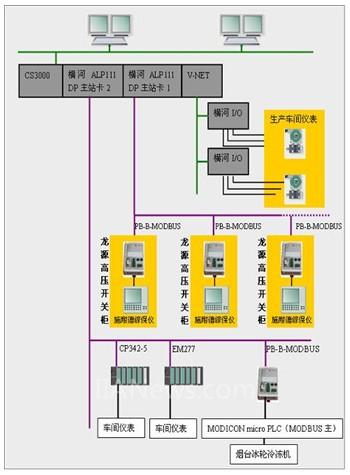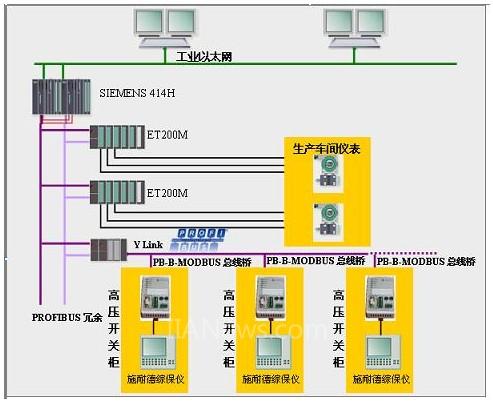 PB-B-MODBUS總線橋主要應(yīng)用在還原爐開(kāi)關(guān)柜與PROFIBUS主控系統(tǒng)的通訊。該系統(tǒng)采用雙冗余PROFIBUS和光纖通信,可靠性高、抗干擾能力強(qiáng)。