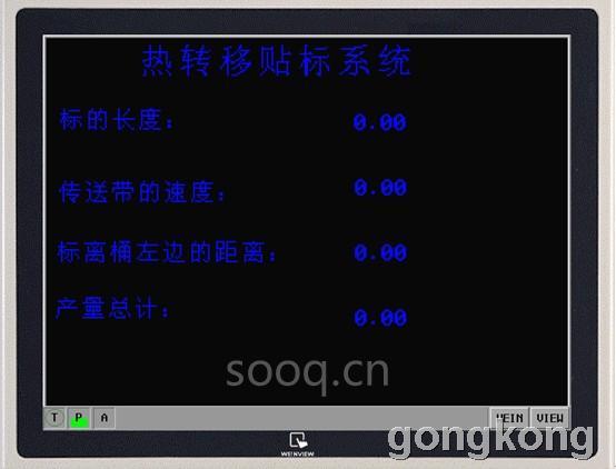 采用WinView的觸摸屏MT508TV45WV,隨時可以在觸摸屏上根據(jù)不同的塑料桶來修改相應貼標的相關參數(shù),其操作界面如下:
