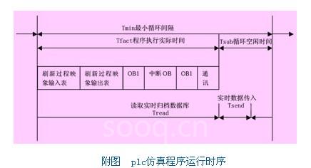 plc仿真程序運(yùn)行時(shí)序如附圖所示。如果同一時(shí)間點(diǎn)數(shù)據(jù)發(fā)送完成需耗時(shí)tsend、讀取耗時(shí)tread,plc仿真程序主循環(huán)耗時(shí)需tfact秒。為了保證同一時(shí)間點(diǎn)數(shù)據(jù)被同步刷新必須滿(mǎn)足以下條件: