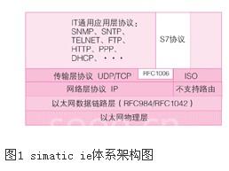 對(duì)于未來自動(dòng)化網(wǎng)絡(luò)技術(shù)的主角,從現(xiàn)有市場(chǎng)應(yīng)用角度看,以太網(wǎng)iso/osi七層模型中頂層應(yīng)用層協(xié)議的標(biāo)準(zhǔn)化、通用性和開放性是決定各供貨商設(shè)備彼此間是否可具備互操作性的首要條件,應(yīng)用層協(xié)議的標(biāo)準(zhǔn)和開放為不同層次、不同廠商、不同種類的設(shè)備實(shí)現(xiàn)互聯(lián)通信及實(shí)現(xiàn)高效的統(tǒng)一管理提供了良好的實(shí)現(xiàn)平臺(tái),縱觀西門子工業(yè)以太網(wǎng)simatic ie的發(fā)展就順應(yīng)了這一市場(chǎng)的需求和趨勢(shì),simatic ie體系架構(gòu)如圖1所示。