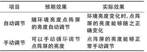 在調(diào)節(jié)亮度功能下,點(diǎn)陣屏可根據(jù)環(huán)境自動(dòng)改變亮度。操作人員也可根據(jù)需要手動(dòng)調(diào)節(jié),并保持該亮度[4].
