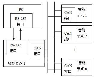 CAN(Controller Area Network)即控制器局域網(wǎng),是目前廣泛應該的總路線之一。CAN總線通信距離限制小,它的直接通信距離最大可達10km,最高通信速率可以達1Mb/s(此時距離最長為40m),節(jié)點數(shù)可多達110個。因此它特別適合于工業(yè)遠程過程監(jiān)控設備的互聯(lián)和電網(wǎng)絡設備的調(diào)試和維護?;贑AN總線的分布式控制系統(tǒng)的一般組成模式如圖1所示。上位機PC機通過RS-232連接到總線上某一智能節(jié)點??梢詫Π惭b在現(xiàn)場某些節(jié)點的程序進行遠距離在線升級和改變某些功能,因此利用CAN總線進行單片機的在線編程就顯得非常必要。