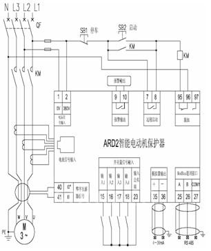 圖2直接啟動(dòng)接線方式的ARD2智能電動(dòng)機(jī)保護(hù)器典型應(yīng)用圖