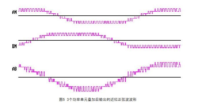 單個(gè)功率單元原理圖如圖3所示,igbt工作原理如圖4。當(dāng)igbt q1、q4同時(shí)閉合時(shí),電機(jī)上的電壓為a點(diǎn)高,b點(diǎn)低;igbt其重要q2、q3同時(shí)閉合時(shí),則電機(jī)上的電壓為a點(diǎn)低b點(diǎn)高。這樣和連續(xù)不斷地交替開(kāi)合,在電機(jī)兩端就形成了一交變電壓,也就是交流電。西門(mén)子完美無(wú)諧波變頻器通過(guò)將多個(gè)低壓功率單元(690v)的輸出疊加起來(lái)得到近似于正弦波的中壓(6kv)波形。圖5為3個(gè)功率單元疊加后輸出的近似正弦波波形。