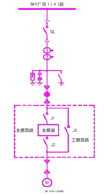 ?。?)工頻轉(zhuǎn)變頻:由dcs發(fā)信號(hào)使j3分閘,j1合閘。延時(shí)2s后,j2合閘(躲開(kāi)電機(jī)反電動(dòng)勢(shì)的影響),工頻轉(zhuǎn)變頻完成。