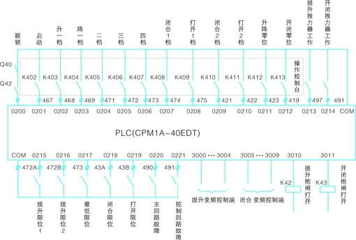經(jīng)過綜合分析與調(diào)查,決定對原料庫4臺抓斗天車實(shí)施plc和變頻調(diào)速技術(shù)改造。采用模擬信號聯(lián)動控制臺實(shí)現(xiàn)大、小車無級調(diào)速;提升采用5級調(diào)速;閉合采用2級調(diào)速的控制策略;大小車行走、提升、倉門、平臺口安全防護(hù)等保護(hù)裝置,均采用非接觸感應(yīng)式開關(guān)或光電式行程開關(guān);天車安全防護(hù)、邏輯聯(lián)鎖等措施均采用plc程序?qū)崿F(xiàn);天車運(yùn)行、狀態(tài)等相關(guān)信息進(jìn)行在線顯示、記錄和存貯等功能。