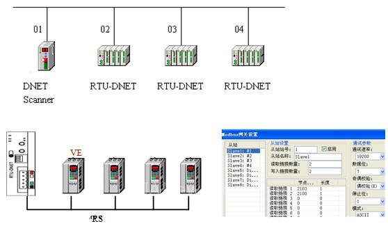 圖4 RTU-DNET可以作為devicenet遠(yuǎn)程I/O等的從站模塊也可以做RS485通訊網(wǎng)關(guān)