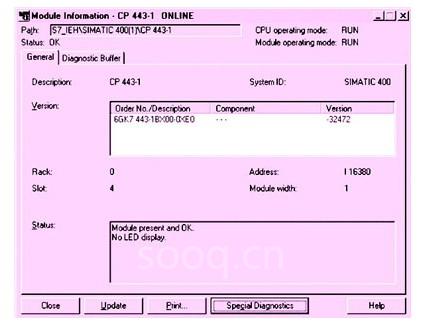 可以點(diǎn)擊圖3中的speicial diagnostics按鈕打開ncm s7工業(yè)以太網(wǎng)診斷對(duì)話框進(jìn)行進(jìn)一步的檢查。