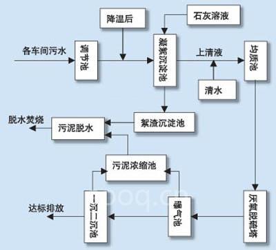 沉淀池定時(shí)打開石灰泵及閥門,加入按照比值控制配比好的熟石灰溶液,以加強(qiáng)污泥的脫水能力及改善污水的PH值,在若干時(shí)段內(nèi)離線采集池內(nèi)廢水,測量其酸堿度。沉淀池底部的刮泥機(jī)定時(shí)工作,將沉淀下來的污泥刮入絮渣沉淀池,再定時(shí)控制每日排出定量的濃縮污泥進(jìn)入污泥脫水工序。沉淀池中的上清液體經(jīng)加水稀釋后排入均質(zhì)池,定時(shí)排入下一道工序。