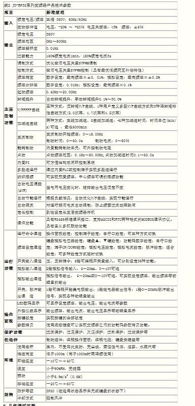 JD-BP32系列變頻器產(chǎn)品技術(shù)參數(shù)如表2所示。