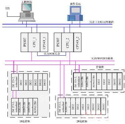 系統(tǒng)共配置三對(duì)ControlLogix冗余控制器,采用1794系列分布式I/O。分布式I/O采用冗余通訊的ControlNet網(wǎng)絡(luò)??刂破髋c操作站的通訊采用冗余的100M以太網(wǎng)。配置兩臺(tái)就地操作站,兩臺(tái)集控室操作站,一臺(tái)歷史站和工程師站。另外配置一臺(tái)A3和A4網(wǎng)絡(luò)打印機(jī)。SOE如需要,可單獨(dú)配置控制器實(shí)現(xiàn)。