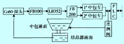 在液位控制儀中轉(zhuǎn)換成標(biāo)準(zhǔn)信號(hào)后送到plc和上位機(jī)的過程中,考慮到意外情況下不能關(guān)閉中包塞棒,增加了一套信號(hào)傳輸通道fb200,一旦一路發(fā)生中斷,可在不到3s的時(shí)間內(nèi)投運(yùn)另一路。plc和上位機(jī)在完成監(jiān)控功能的同時(shí)輸出信號(hào)到液壓比例閥,在plc輸出信號(hào)一定的前提下,重點(diǎn)研究了比例調(diào)節(jié)閥內(nèi)放大旋鈕的配合,掌握了放大和振幅之間的線性關(guān)系,可實(shí)現(xiàn)中包塞棒液壓缸的振幅調(diào)節(jié),進(jìn)而實(shí)現(xiàn)結(jié)晶器液面的調(diào)節(jié),達(dá)到液面檢測和調(diào)節(jié)的閉環(huán)控制,最終實(shí)現(xiàn)整個(gè)l1級(jí)的閉環(huán)控制,如圖2所示。