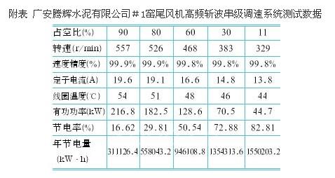 3 高頻斬波串級調速系統(tǒng)在水泥廠中的應用情況