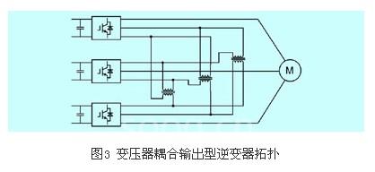 變壓器耦合輸出型逆變器只需3個(gè)獨(dú)立的三相逆變器就可以產(chǎn)生中高壓輸出,在運(yùn)行時(shí)每個(gè)逆變器都是平行的,各提供1/3的輸出功率,因此為高壓系統(tǒng)使用低壓igbt器件提供了方便,這種平衡運(yùn)行狀態(tài)也使得直流側(cè)電容不需要儲(chǔ)存太多的能量。輸出變壓器的存在,有利于產(chǎn)生更高的輸出電壓,且能消除逆變器間的環(huán)流。
