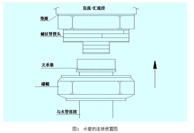 然而一個(gè)月后,再次因壓力過(guò)低停車(chē),與上次故障相同。懷疑有隱蔽的泄漏點(diǎn)。將所有柜底擦凈,鋪上白紙,一小時(shí)后,在3#柜底的紙上出現(xiàn)水痕。打開(kāi)3#柜上蓋,拆除保護(hù)板,充電電阻等,直到拆到一塊觸發(fā)板時(shí),發(fā)現(xiàn)其頂部一管接頭上有細(xì)小水珠,打開(kāi)接頭,管接頭上水管已裂開(kāi)。其連接裝置結(jié)構(gòu)圖如圖2所示。將軟管裂開(kāi)段切除,重新聯(lián)接,上緊。經(jīng)24h運(yùn)行,柜下無(wú)水痕,故障排除。