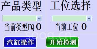 手動(dòng)檢測畫面,將產(chǎn)品放在某個(gè)空位上,然后按下雙手確認(rèn)按鈕,先選擇產(chǎn)品類型、工位,然后點(diǎn)擊汽缸動(dòng)作后開始檢測。測量數(shù)據(jù)只在畫面顯示,不保存歷史。