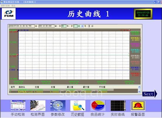 歷史曲線的查看,可以查看每個(gè)工位的實(shí)時(shí)測量數(shù)據(jù),包括最大值、最小值、平均值等。