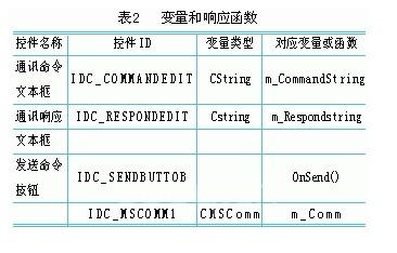 首先利用mfcappwizard(exe)建立一個(gè)基于對(duì)話(huà)框,支持activex控件,命名為transcomn的應(yīng)用程序。然后在對(duì)話(huà)框中加入一些控件,其中那個(gè)mscomm控件(電話(huà)形狀的控件)必須是在系統(tǒng)中注冊(cè)過(guò)的microsoft communications control,由它進(jìn)行通訊時(shí)首先得設(shè)置它的一些屬性,這些屬性既可以在控件屬性對(duì)話(huà)框中設(shè)置也可以在程序中設(shè)置,本文用后一種方法,在程序中對(duì)mscomm控件屬性設(shè)置。最后用classwizard為控件添加變量和響應(yīng)函數(shù)如表2