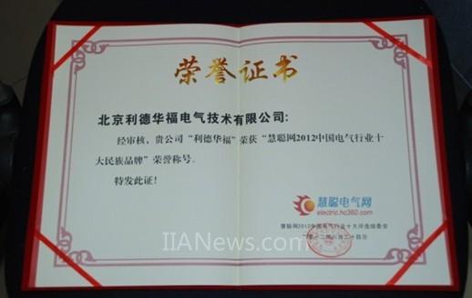 利德華福榮獲“2012中國(guó)電氣行業(yè)十大民族品牌”稱號(hào)