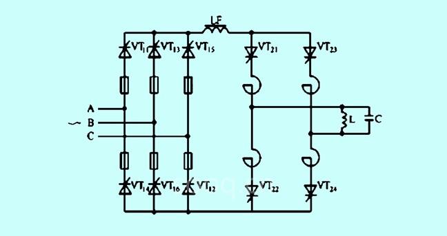 (2)對負(fù)載進(jìn)行檢查,在中頻感應(yīng)加熱裝置中,如果負(fù)載不匹配,如電容與感應(yīng)線圈不匹配,也會出現(xiàn)輸入電流大,輸出功率小的現(xiàn)象。我們對感應(yīng)線圈的感抗進(jìn)行測試,沒有發(fā)現(xiàn)異常,對并聯(lián)電容進(jìn)行簡單檢查,也沒有發(fā)現(xiàn)異常;然后逐步切電容或投電容,啟動中頻裝置,即進(jìn)行負(fù)載阻抗的匹配試驗,故障現(xiàn)象依舊,說明負(fù)載阻抗匹配不存在問題。