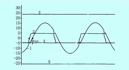 為此,我們調(diào)整了超前角的大小,減小超前時間到40μs,如圖4所示。再次啟動系統(tǒng)時,中頻電壓開始大約為250v時,輸入電流開始為600a左右,隨著加熱的進(jìn)行,輸入電流逐步減小到350a左右。當(dāng)給定功率的增加時(即給定電壓的增加),中頻輸出功率成比例上升;輸入電流開始也增加,但隨著加熱的進(jìn)行逐步減少;芯棒加熱效果好,系統(tǒng)恢復(fù)正常工作。