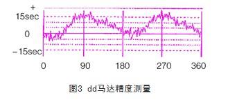·高解析度和高定位精度。dyna-serv dd馬達(dá)選配的編碼器分辨率很高,dm1a的解析度為4,096,000ppr,電器控制精度高,已經(jīng)超過普通伺服的控制精度幾個個數(shù)量級。由于制作相當(dāng)精密,最終的絕對精度控制一般可以達(dá)到15秒以內(nèi)。(圖3)