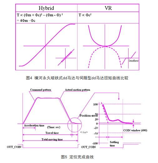 高剛性,結(jié)構(gòu)緊湊,使用效率高。dd馬達(dá)的剛性很強(qiáng),與負(fù)載結(jié)合后特性很硬,對于其驅(qū)動器要求更高。最新型的dynaserv驅(qū)動器可以提供在線增益調(diào)試和共振濾波。橫河dd馬達(dá)的定子是永久磁鐵,可以產(chǎn)生恒定磁場,在單位電流下能夠產(chǎn)生最大的扭矩輸出。橫河dd馬達(dá)和輸出同等扭矩的伺服型dd馬達(dá)相比,電功率消耗低,發(fā)熱量少。在低速下能夠保持恒定扭矩輸出,不會產(chǎn)生低速下扭矩的死區(qū)(圖4)。在停止定位的時候由于永久磁鐵產(chǎn)生的永久磁場,因此能夠在更短的時間內(nèi)實(shí)現(xiàn)精確定位,小于20ms的時間可以把位置固定(圖5)。馬達(dá)中空獨(dú)特設(shè)計(jì)不但減輕了自身慣量,也給客戶提供了更多的安裝形式。組合后的機(jī)械結(jié)構(gòu)會更加緊湊,使用效率比較其他方式最高。