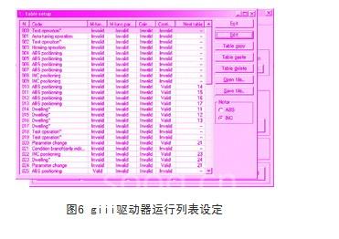橫河giii驅(qū)動器的運(yùn)行列表有很多種類。可以在內(nèi)部實(shí)現(xiàn)相對位置點(diǎn)到點(diǎn)運(yùn)行、絕對位置點(diǎn)到點(diǎn)、homing功能、改變參數(shù)等。通過不同的輸入點(diǎn)編碼的切換,就可以運(yùn)行不同的table號碼,簡單實(shí)現(xiàn)運(yùn)動控制。橫河giii驅(qū)動器一共有60組table可以進(jìn)行任意設(shè)置與編輯。圖6可編寫table列表。以絕對位置點(diǎn)到點(diǎn)為例子,可以設(shè)定加、減速類型、加減速時間,運(yùn)行速度以及目標(biāo)位置等參數(shù),以符合設(shè)備的要求。