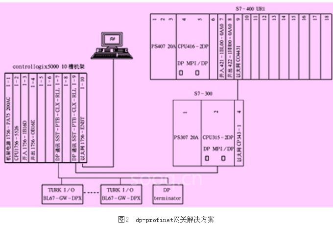 ?。?)方案評(píng)析。這是一個(gè)迂回的方案,以一個(gè)較低配置的s7-300為跳板,實(shí)現(xiàn)了dp-profinet的網(wǎng)關(guān)功能,這樣兩個(gè)就近的控制器s7-300和controllogix5000采用成熟的dp通訊,方法與2.1方案相同,同時(shí)也解決了dp網(wǎng)通訊距離受限制的問(wèn)題,而s7-400與s7-300的通訊采用以太網(wǎng)方式,是siemens內(nèi)部?jī)蓚€(gè)不同控制器之間的以太網(wǎng)通訊,其應(yīng)用層協(xié)議都是profinet,技術(shù)當(dāng)然是成熟的,當(dāng)然其缺點(diǎn)就是通訊配置太繁瑣,但如果需要一個(gè)controllogix5000控制器與多個(gè)s7-400控制器通訊,該方案還是值得考慮的。
