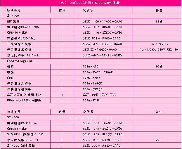 dp網(wǎng)關(guān)解決方案原理與配置設(shè)計(jì)。用一個(gè)s7-300plc作為dp-profinet通訊轉(zhuǎn)換用的公共plc,間接實(shí)現(xiàn)controllogix5000與s7-400的以太網(wǎng)通訊,如圖2所示。該方案測(cè)試需要的硬件配置如表2所示。