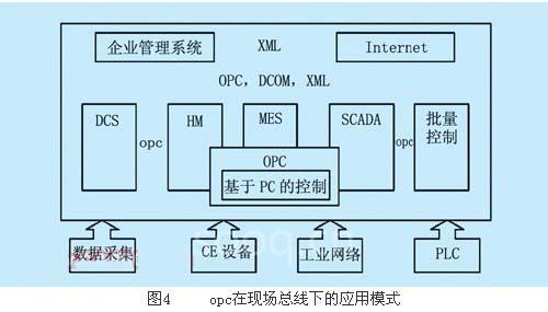 在現(xiàn)場總線應(yīng)用方面,opc技術(shù)作為實(shí)現(xiàn)控制系統(tǒng)現(xiàn)場設(shè)備層與過程監(jiān)控層進(jìn)行信息交互,是實(shí)現(xiàn)控制系統(tǒng)開放性的關(guān)鍵技術(shù),其應(yīng)用模式如圖4所示。