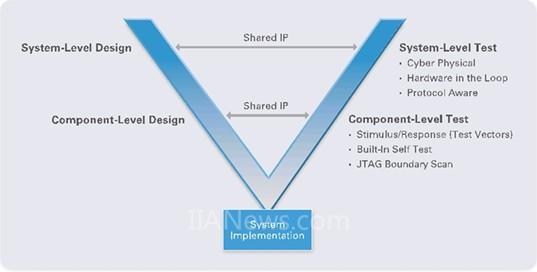 圖1. "V"框圖通常用于說(shuō)明設(shè)計(jì)、實(shí)現(xiàn)和測(cè)試的理想流程。將通用系統(tǒng)設(shè)計(jì)語(yǔ)言用于跨越整個(gè)"V"流程可以最大化技能和算法重用,同時(shí)可以最小化轉(zhuǎn)換錯(cuò)誤和查找修正周期數(shù)。