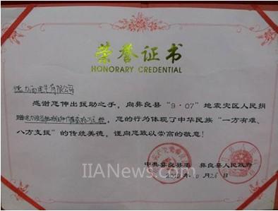 彝良縣政府授予德力西電氣榮譽(yù)證書
