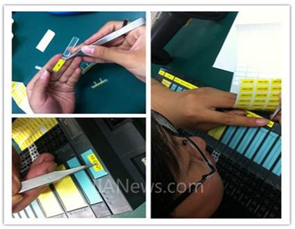 分揀好物料之后,原先準(zhǔn)備的Loop號(hào)就該出場(chǎng)了。因?yàn)長(zhǎng)oop號(hào)很小很輕,大一點(diǎn)的物料還好說,像那些小的模塊,那就是對(duì)自己耐心細(xì)心的絕佳考驗(yàn)了。鑷子在這中間起到了很大的作用,分料組的同事們形象地把自己稱為“鑷子幫”,經(jīng)??梢钥吹剿麄兡弥囎樱⌒囊硪淼膶⑿↑S號(hào)貼到物料上。雖然鑷子比繡花針大得多,但碰上那種特別小的物料,粘貼小黃號(hào)可以說是對(duì)同事(尤其是男同事)的一大考驗(yàn),經(jīng)常可以看到他們?nèi)缗R大敵般的謹(jǐn)慎細(xì)致。